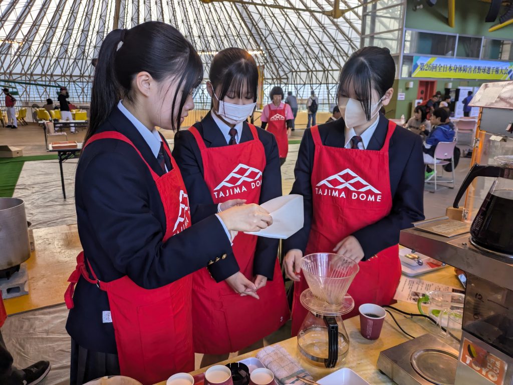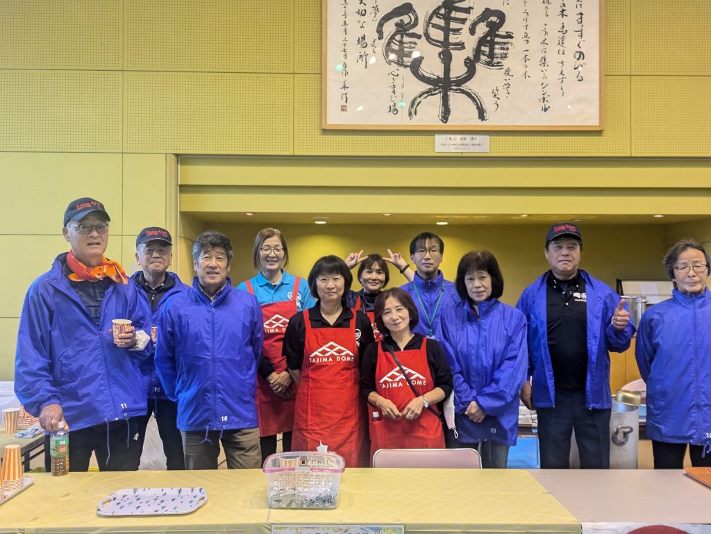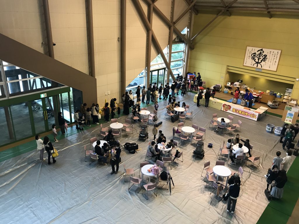 手作り豚汁のサービス(無料)、コーヒー、ポップコーンの販売など