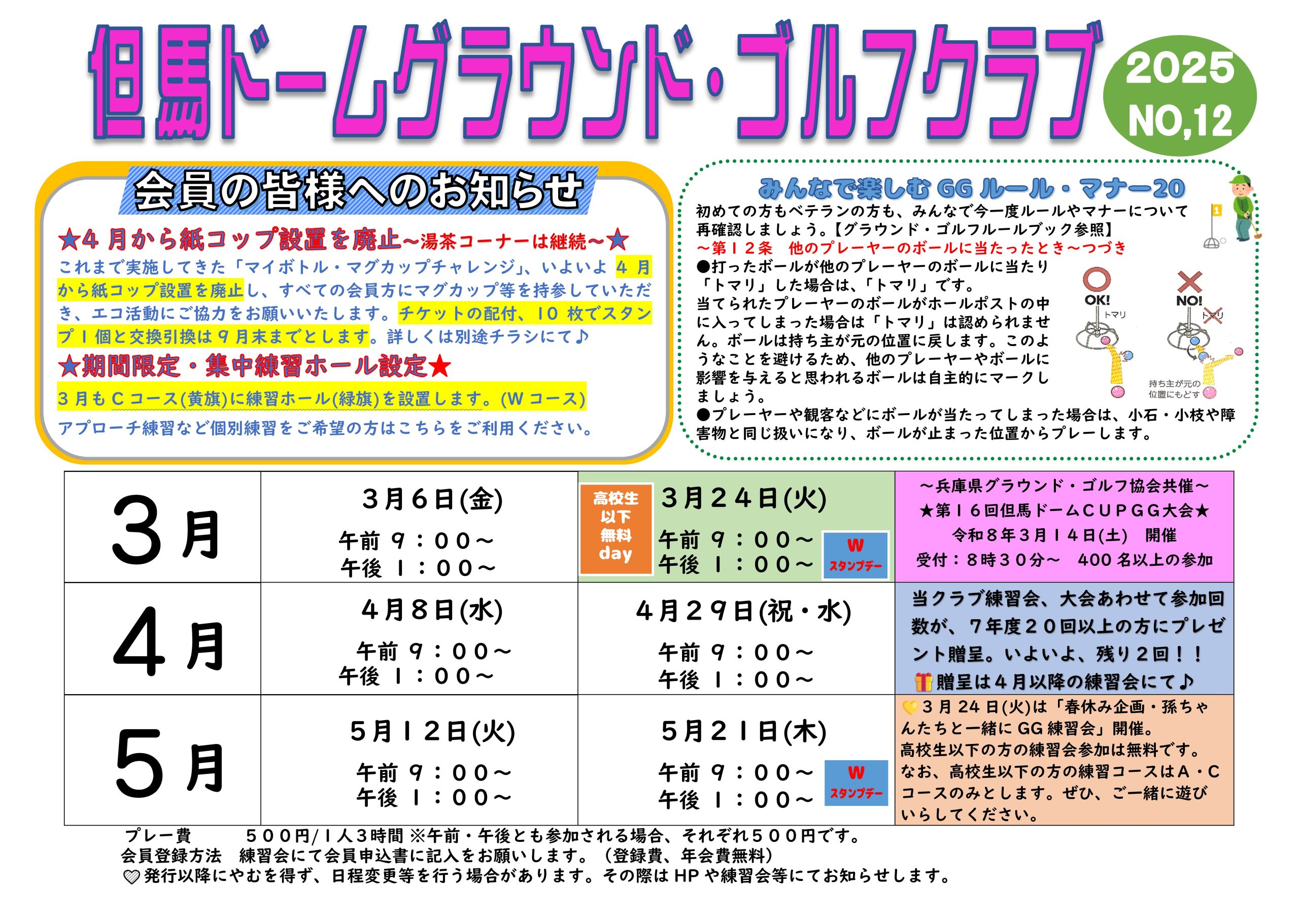但馬ドームグラウンド・ゴルフクラブ会員の皆様へ