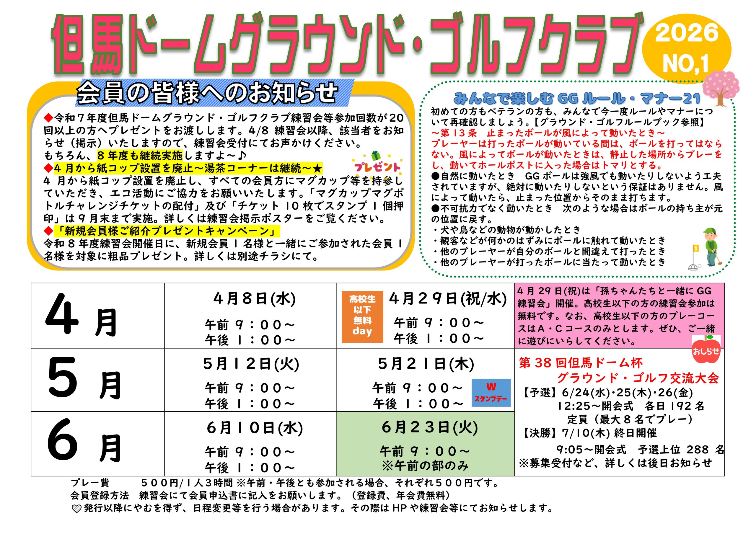 今年度も、「但馬ドームグラウンド・ゴルフクラブ」をどうぞよろしくお願いいたします。事務局はおなじみ飯田が担当いたしますよ♪