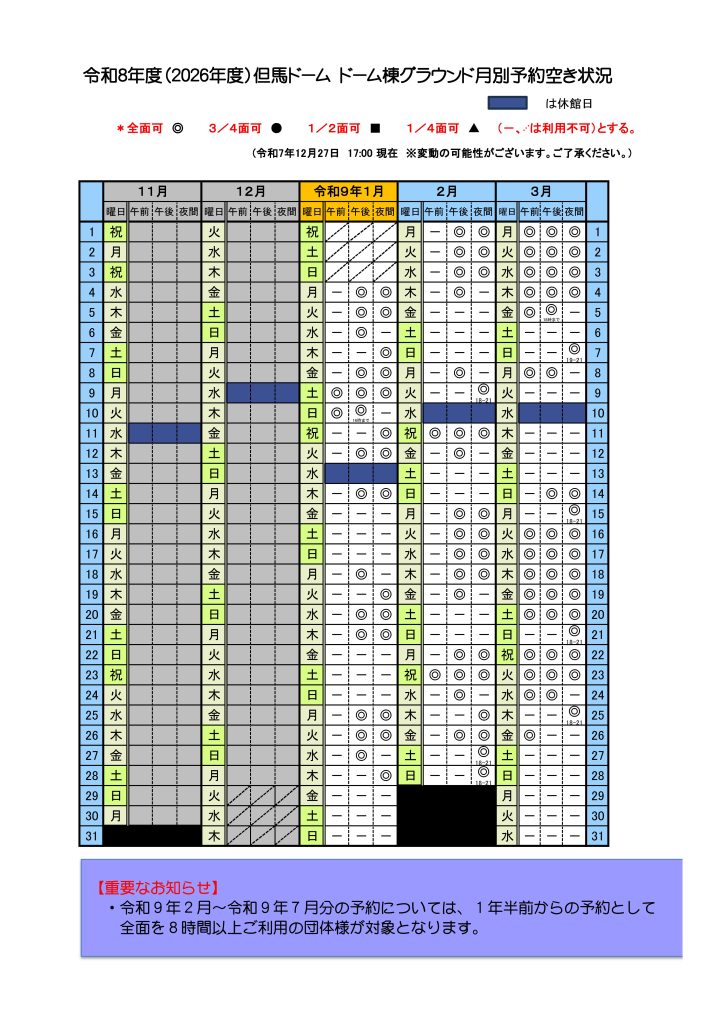 令和8年度、令和9年度のドーム棟グラウンドの空き状況をお知らせいたしますのでご覧ください。